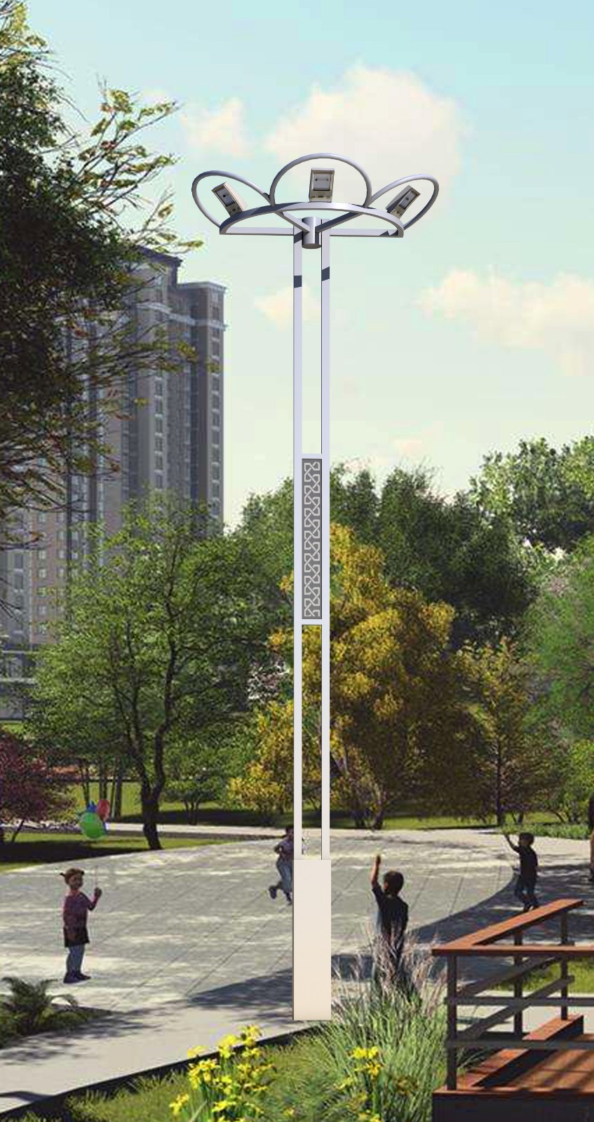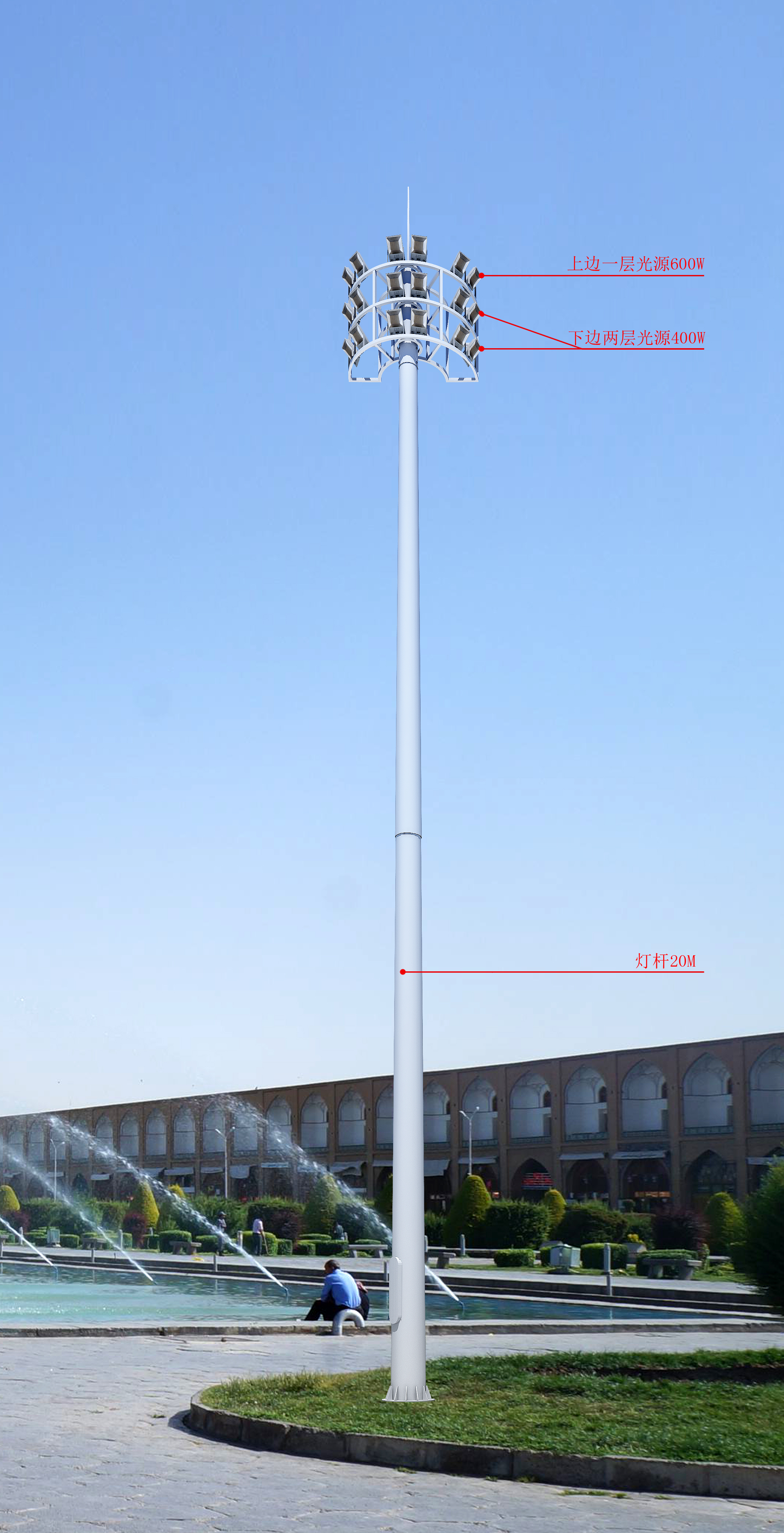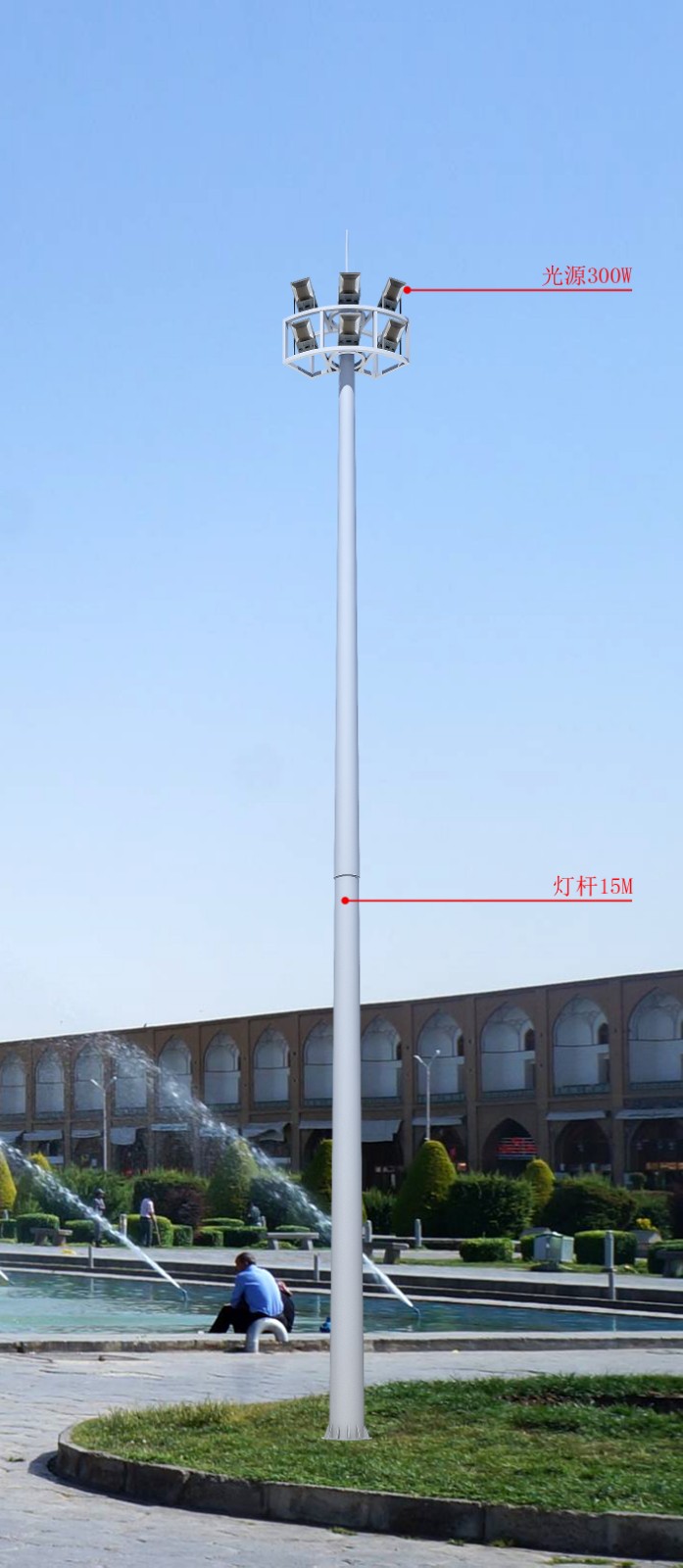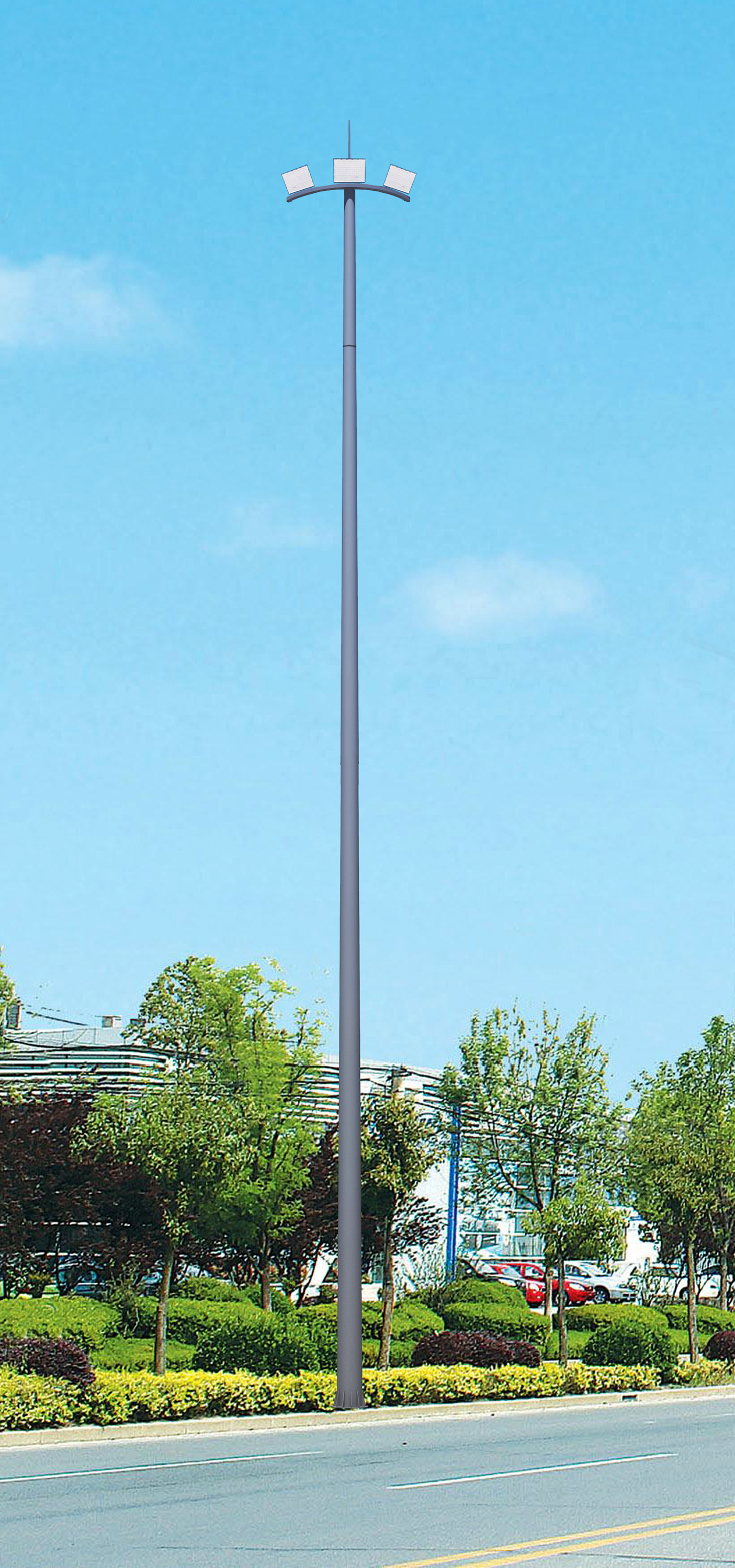 高杆燈一般是指15米以上鋼製錐形燈(dēng)杆和大(dà)功率組(zǔ)合式燈架構成的新型照明裝置。它由燈(dēng)頭(tóu)、內部燈具電氣、杆(gǎn)體及基礎部分組成。燈頭造型可根據用戶要求、周圍環境、照明需要具體而定;內部(bù)燈具多由泛光燈和(hé)投光燈組成,光源采(cǎi)用(yòng)NG400高壓鈉燈,照明半徑達60米(mǐ)。杆體一般為棱錐形(xíng)獨體結構,用鋼板卷製(zhì)而成(chéng),高度為15—40米,多為兩到三(sān)節構成。