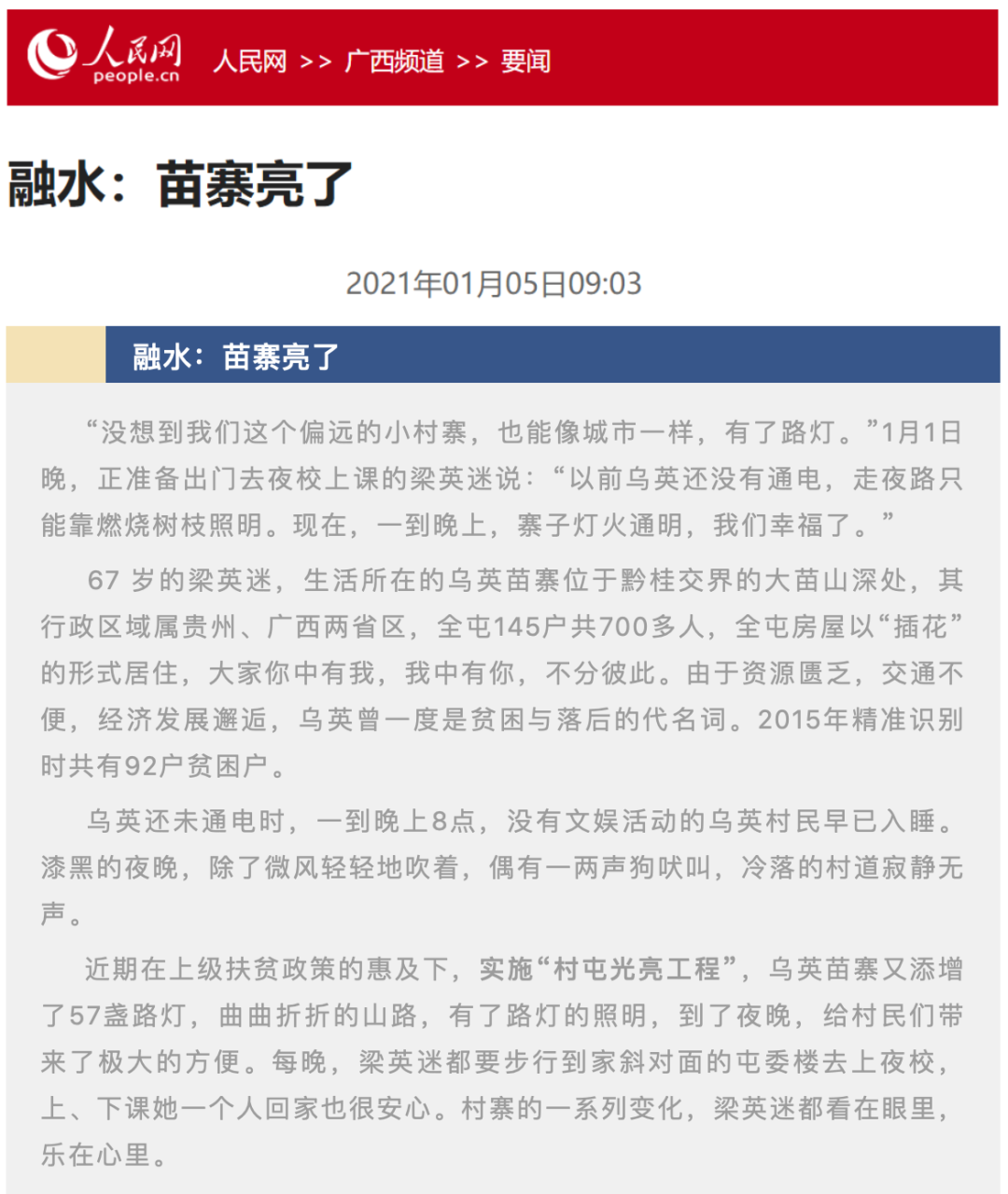 柳江區“鄉村光亮工(gōng)程”的成功(gōng)實施(shī),為新時代新農村路燈建設(shè)探索出了一條“亮起來、成本低(dī)、維護好”的鄉村路燈建設模式,“柳州模式”已然成型。